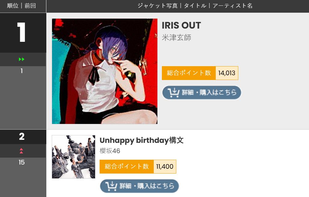 でも多分最高ポイントよりチャートイン数のが大事なんじゃないかヒットという意味では