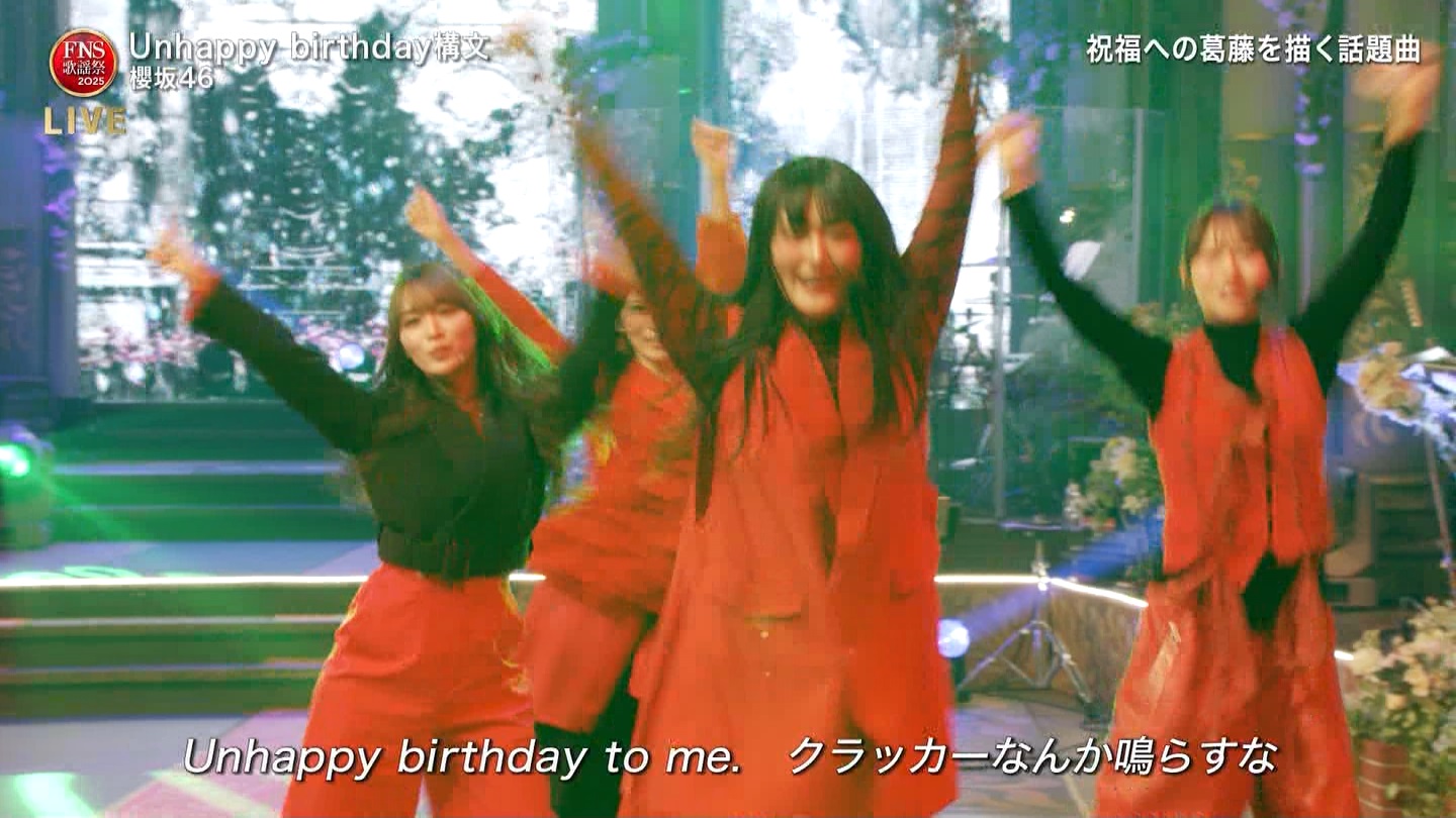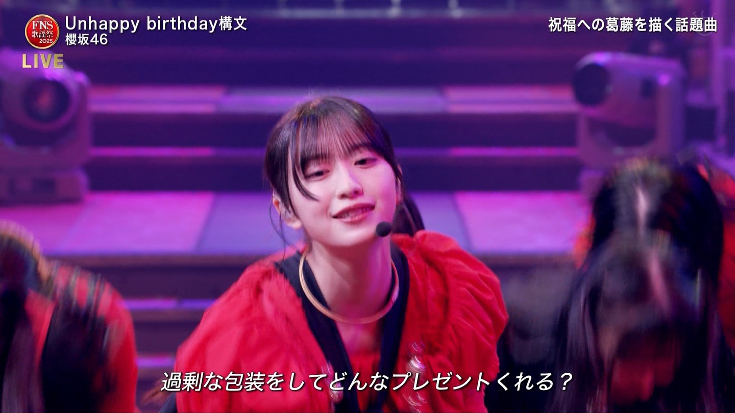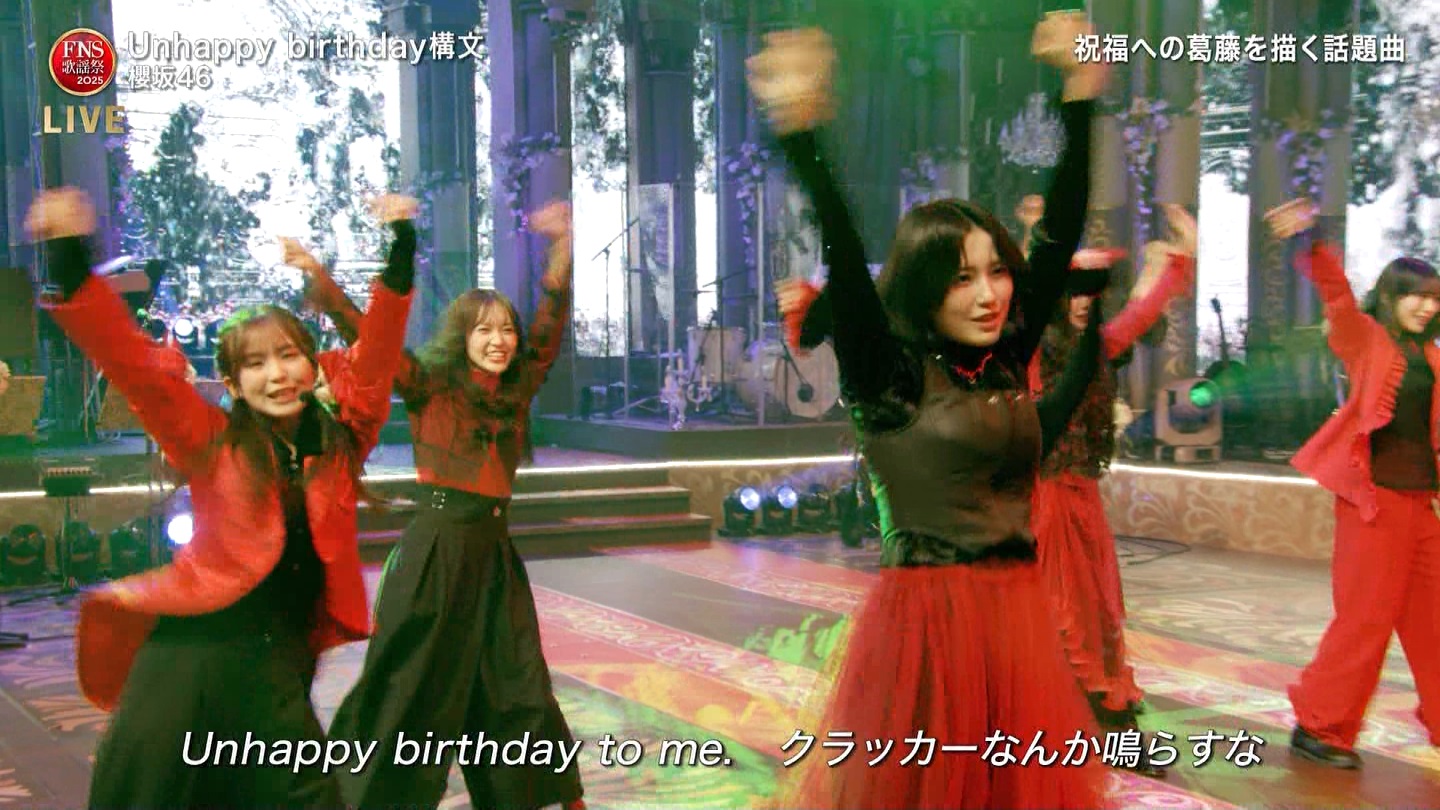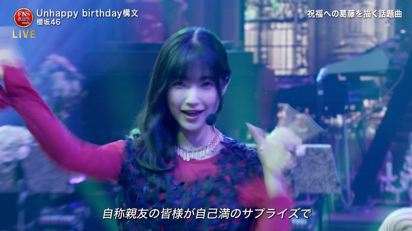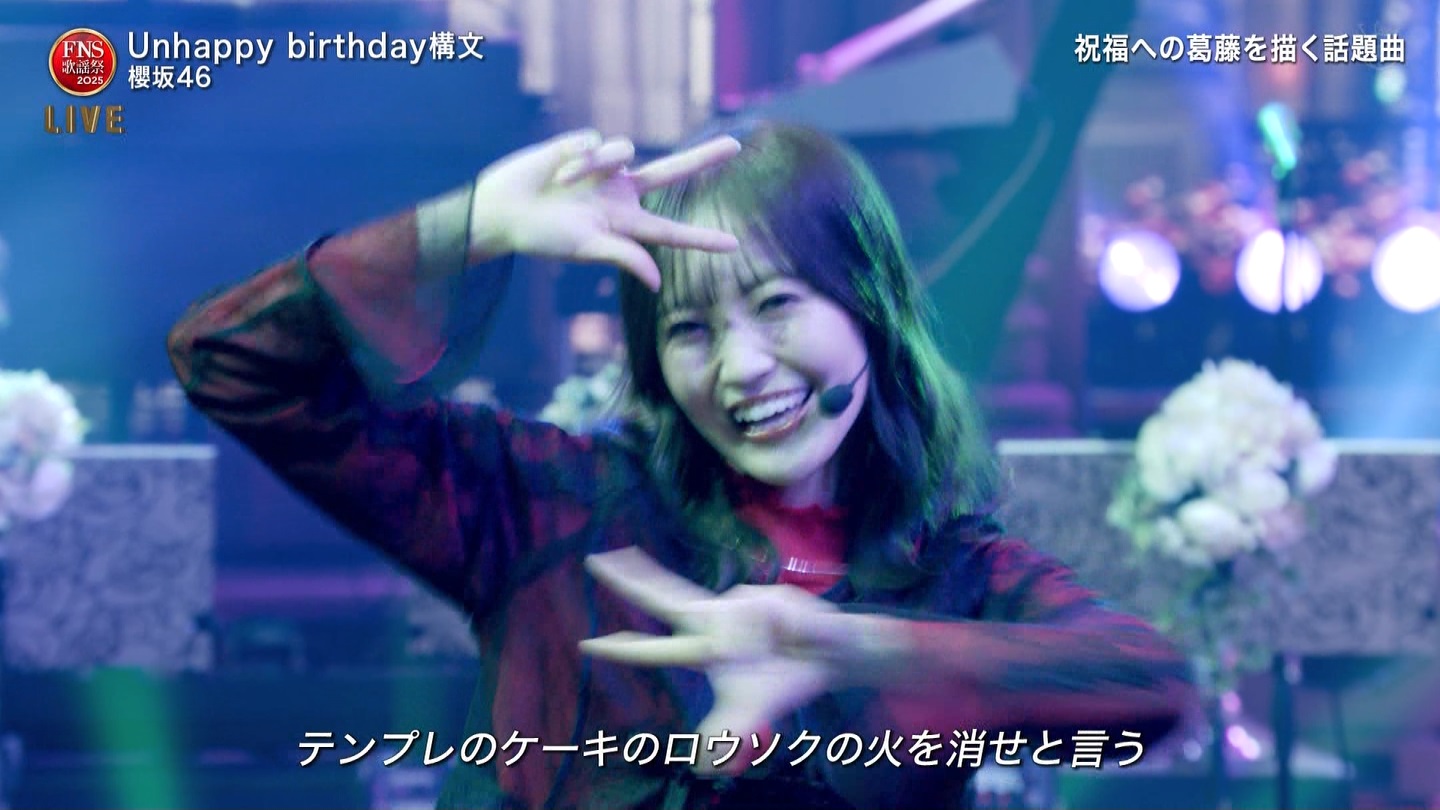 お待ちしております😉#櫻坂46_UnhappyBD構文 pic.twitter.com/bGbI7FTMmy— FNS歌謡祭【公式】 (@fns_kayousai) December 10, 2025